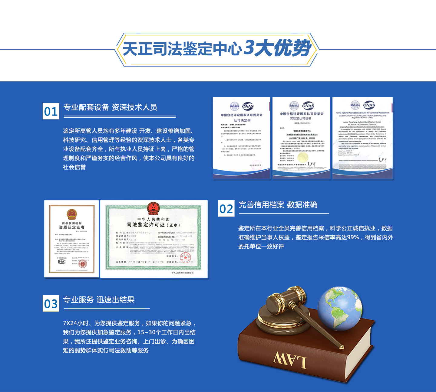 安徽天正司法鑒定中心于2011年10月20日,經(jīng)安徽省司法廳批準(zhǔn)成立;是一所集法醫(yī)類鑒定、痕跡鑒定、文書鑒定、聲像鑒定、微量物證鑒定于一體的綜合類的司法鑒定機(jī)構(gòu)。 我中心位于合肥市蜀山區(qū)井崗路與甘泉路交口CBC拓基拓基廣場B座5樓、6樓,職場面積近2000平方米,配備技術(shù)人才,建有鑒定實(shí)驗室及儀器設(shè)備。截止目前,我中心有司法鑒定人53名,具有中級以上技術(shù)職稱的36名;并建有安徽天正司法鑒定中心實(shí)驗科研中心、法醫(yī)毒物實(shí)驗室、法醫(yī)物證實(shí)驗室、電子數(shù)據(jù)實(shí)驗室、法醫(yī)病理實(shí)驗室、微量物證實(shí)驗室、文檢實(shí)驗室等,同時與各大高校建立校企合作關(guān)系,提供實(shí)習(xí)實(shí)訓(xùn)平臺。